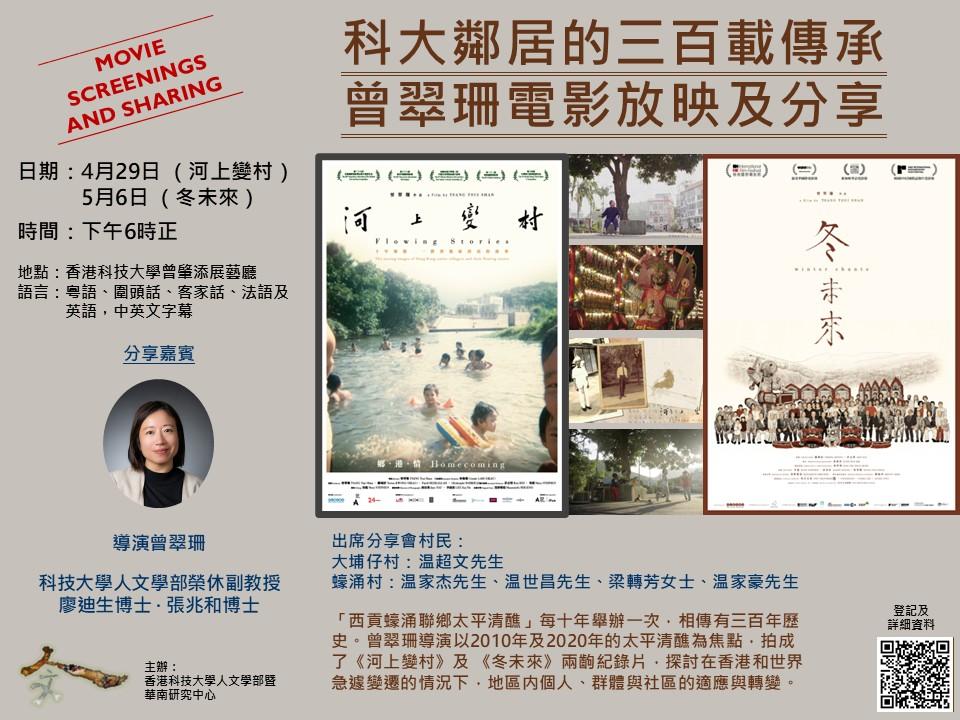 「西貢蠔涌聯鄉太平清醮」每十年舉辦一次,相傳有三百年歷史。曾翠珊導演以2010年及2020年的太平清醮為焦點,拍成了《河上變村》及 《冬未來》兩齣紀錄片,探討在香港和世界急遽變遷的情況下,地區內個人、群體與社區的適應與轉變。