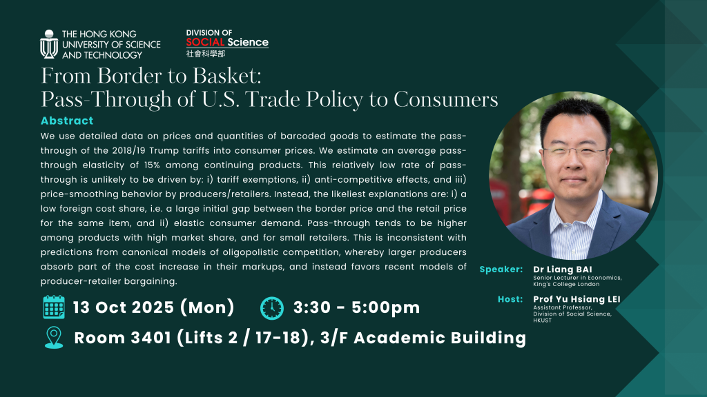 Host: Prof Yu Hsiang LEI, Assistant Professor, Division of Social Science, HKUST