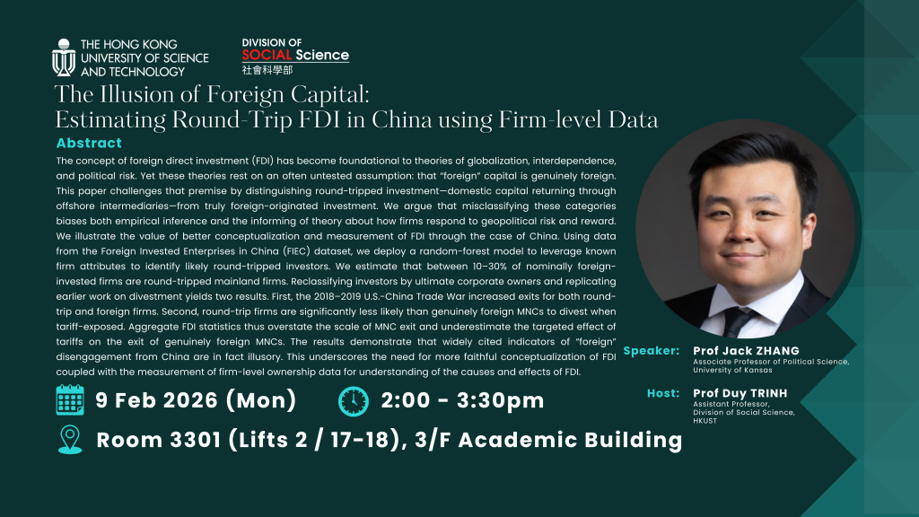 SOSC Seminar - The Illusion of Foreign Capital: Estimating Round-Trip FDI in China using Firm-level Data