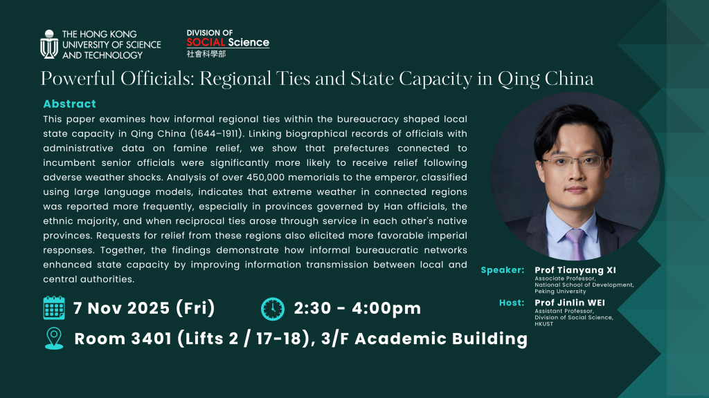Host: Prof Jinlin WEI, Assistant Professor, Division of Social Science, HKUST
