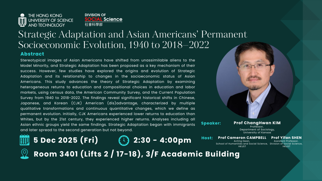 Host: Prof Cameron CAMPBELL, Acting Dean, School of Humanities and Social Science, HKUST